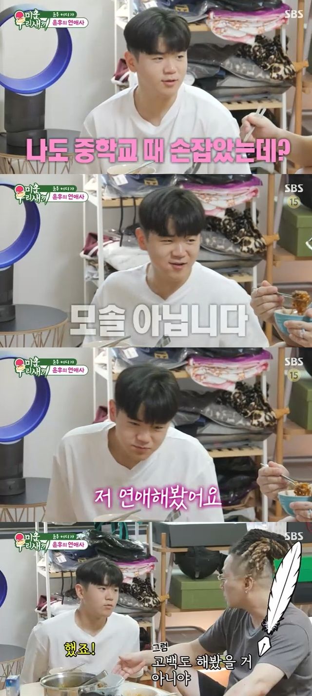 이에 윤후는 "나도 중학교 때 손 잡았는데?"라며 폭탄 고백을 했다. 이어 '요즘 썸이니 이야기하지 않냐. 그런 것도 없었냐'는 아빠의 도발에 "모솔 아니다. 왜 자꾸 모솔이라고 하냐"라고 밝혔다.