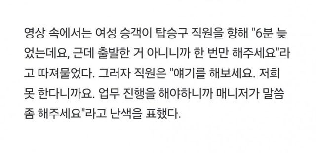 6분 늦었는데 비행기 안태워준다고 영상 올린 사람