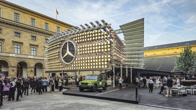 7일(현지시간) 독일 뮌헨 아포테켄호프 메르세데스-벤츠 파빌리온에 마련된 IAA 메르세데스-벤츠 프리 나이트 행사장 전경. 사진=한국자동차기자협회 제공