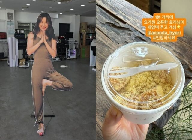 8일 이효리는 자신의 요가원 ‘아난다 효리’ 공식 SNS 계정에 요가원 수강생 등의 게시물을 공유해 올렸다. 이 중 수강생 및 인근 주민들에게 돌린 개업떡 인증샷도 공개했다.