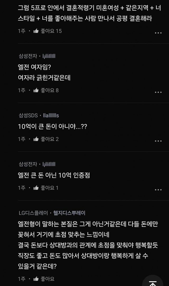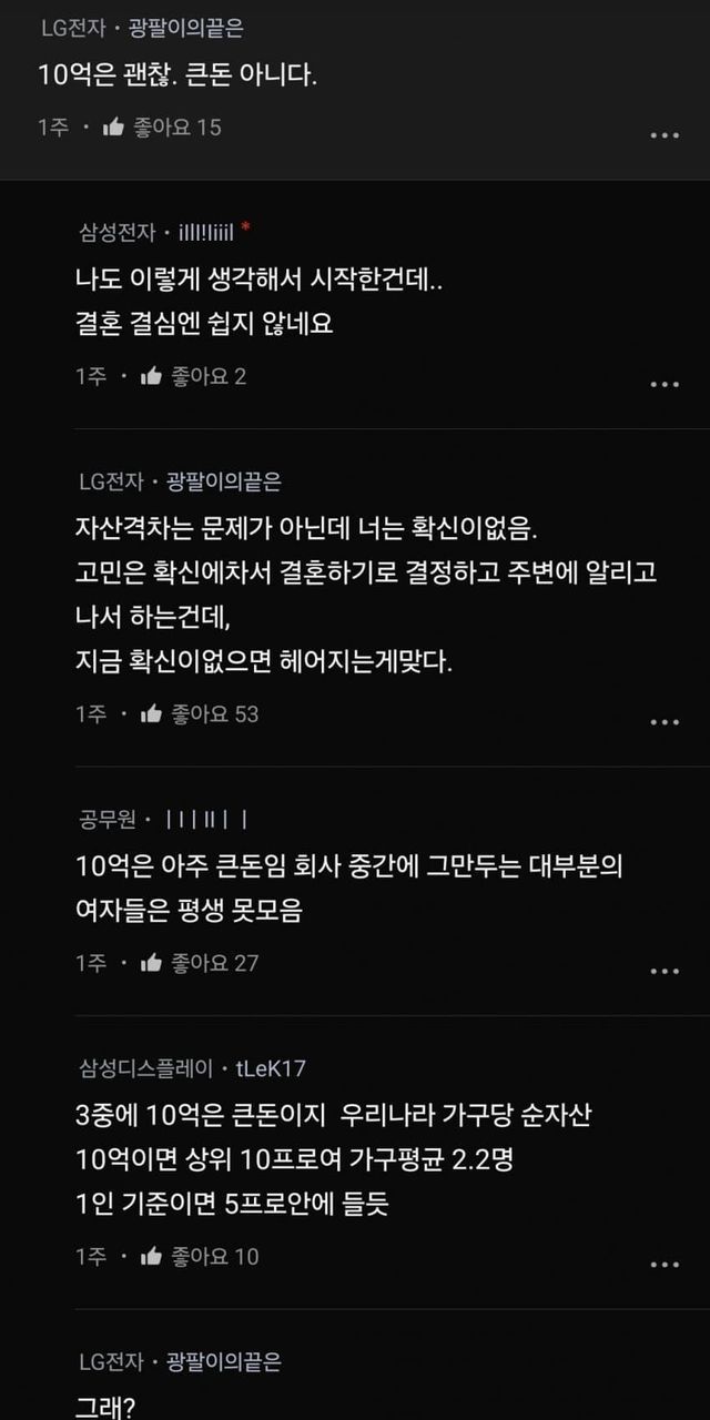 10억 큰돈아니라는 lg 근데왜 여자가 돈더모았다는 글엔 현실 드립이 나오지..