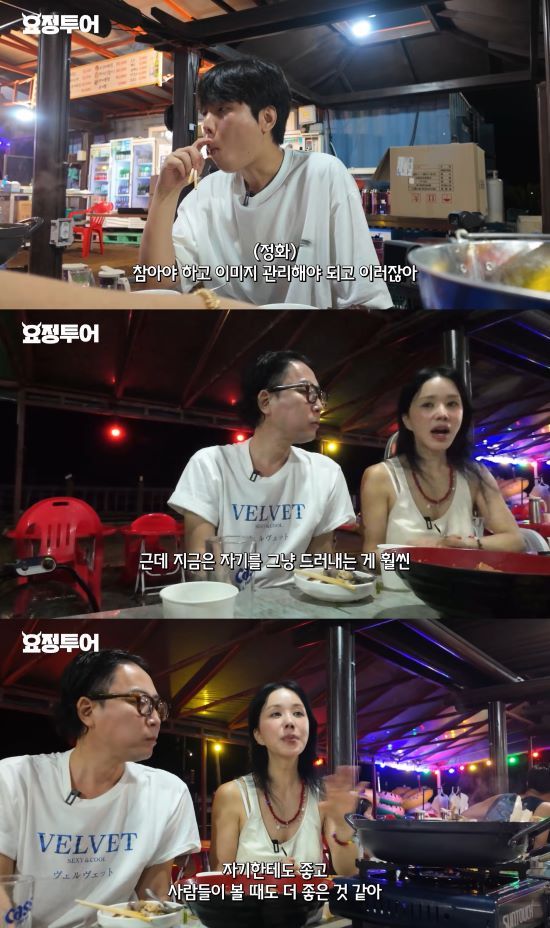 2016년 데뷔한 정승환보다 연예계 24년 선배인 엄정화는 "예전에는 이미지 때문에 참아야되고 이미지 관리해야되고 그랬다. 근데 지금은 자기를 드러내는 게 자기한테도 좋고 사람들이 볼때도 좋다"라며 조언을 건넸다.