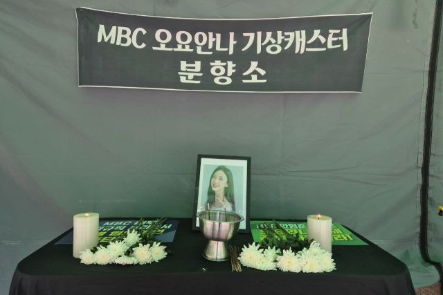 장 씨는 8일 김용균재단, 공공운수노조 등 42개 단체와 함께 서울 마포 MBC 본사 앞에서 기자회견을 연 뒤 'MBC 오요안나 기상캐스터 분향소'를 설치하고 단식 농성을 시작했다. 오는 16일 돌아오는 딸 오 씨의 1주기를 8일 앞두고서였다.