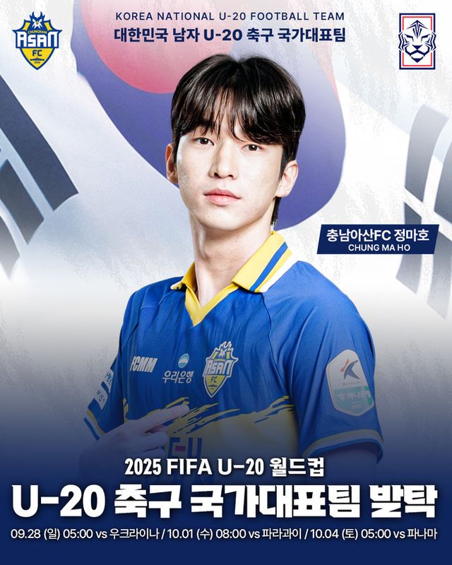 한편, 정마호가 속한 대한민국 U-20 대표팀은 B조에 편성돼 9월 28일(일) 우크라이나와의 조별리그 첫 경기를 시작으로 파라과이, 파나마와 차례로 맞붙으며 16강 진출에 도전한다.