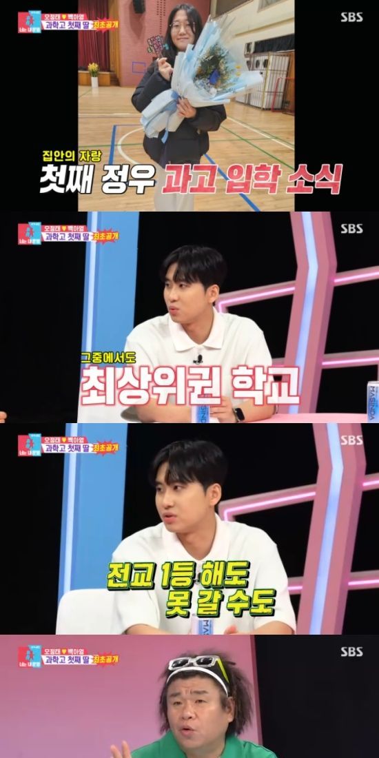 알고보니 오정태♥백아영 부부의 첫째 딸 정우가 과학고에 합격을 한 것. 특히 정우가 입학한 고등학교를 본 미미미누는 "전국에 과학교가 20여 개 정도 있는데, 그 중에서도 상위권인 학교다. 중학교에서 전교 1등이어도 못 갈 수 있다"고 설명했다.