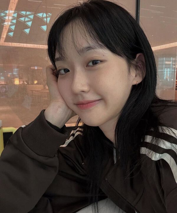 사진 속 한지현은 공항에 있다.