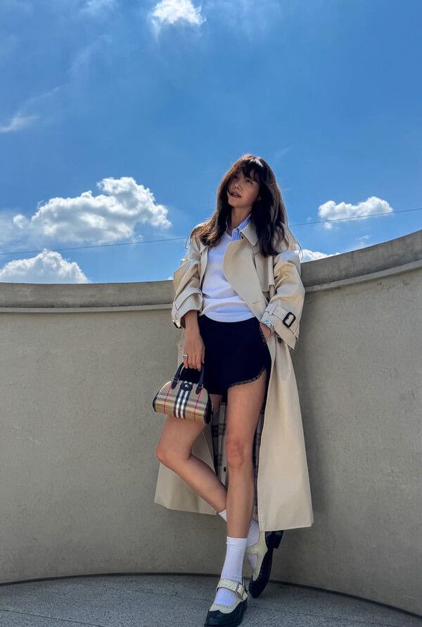 뉴시스 보도에 따르면, 그는 8일 소셜미디어에 "맑은 가을 하늘=트렌치의 계절"이라는 글과 함께 사진 여러 장을 올렸다.