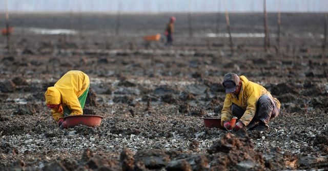 어민들이 자연산 굴을 수확하고 있다. / 전남 강진군 제공