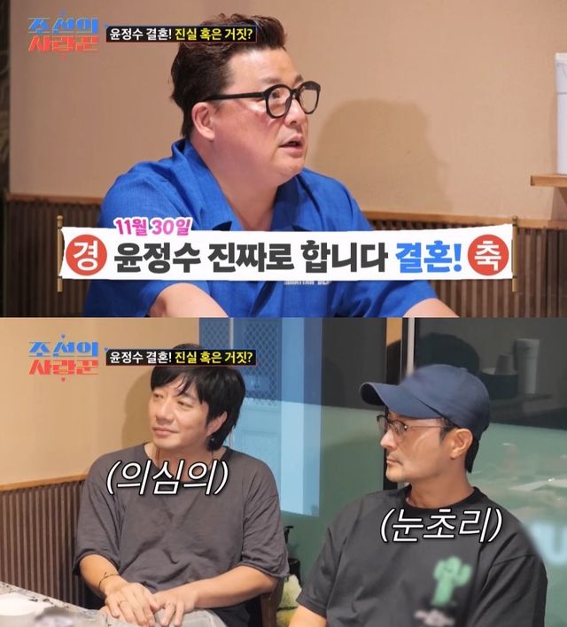 한편, 미모의 '12세 연하' 예비 신부와 11월 결혼 예정이라고 알린 윤정수가 새로운 사랑꾼으로 모습을 드러냈다. 윤정수는 "왜 이렇게 창피하냐. 김숙하고는 한 번도 창피한 적이 없었다"면서 ‘찐사랑’ 공개 앞에 부끄러워했다.