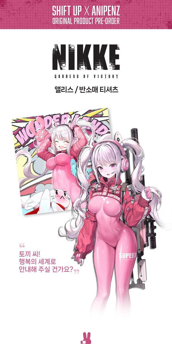 아리솜은 29일부터 다음 달 16일까지 애니펜즈 온라인 스토어를 통해 니케 오리지널 의류 제품의 예약을 받는다. 이번 출시 제품은 게임 내 최고 인기 캐릭터인 '앨리스'와 '헬름'을 비롯해 '필그림 스킨', '카운터스' 원화를 활용해 디자인된 총 7종의 티셔츠다.