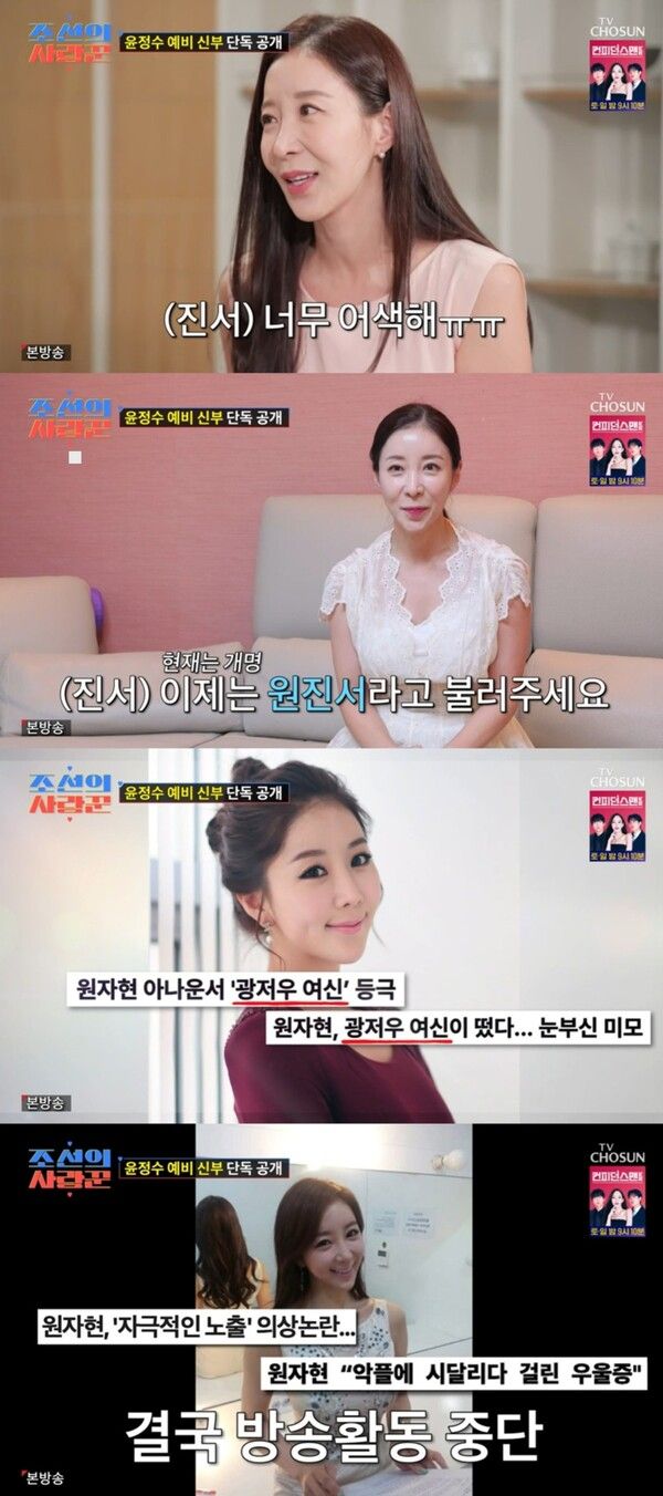 윤정수의 예비신부의 정체는 '광저우의 여신'으로 불렸던 전 스포츠 아나운서 원자현(현 원진서)이었다. 원진서는 "스포츠 방송으로 많이 알려졌던 원자현"이라고 자신을 소개하며, 방송을 중단했던 이유를 밝혔다.