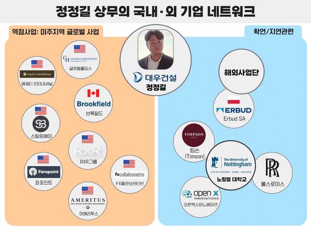 최근 정 상무는 대우건설 미주지역 영향력 확대를 위해 분주하게 움직이고 있다. 일례로 그는 지난해 11월 미국 시카고와 뉴욕을 방문해 현지 시행사·개발사 관계자들을 만나 협력 방안을 논의했다. 시카고 방문 기간 동안엔 사모펀드 회사인 에쿼티 인터내셔널(Equity International), 글로벌 건설사인 스털링 베이(Sterling Bay), 파포인트(Farpoint), 투자자산운용사 아메리투스(Ameritus) 등을 만나 함께할 수 있는 사업 영역에 대해 진지한 논의를 가졌다.