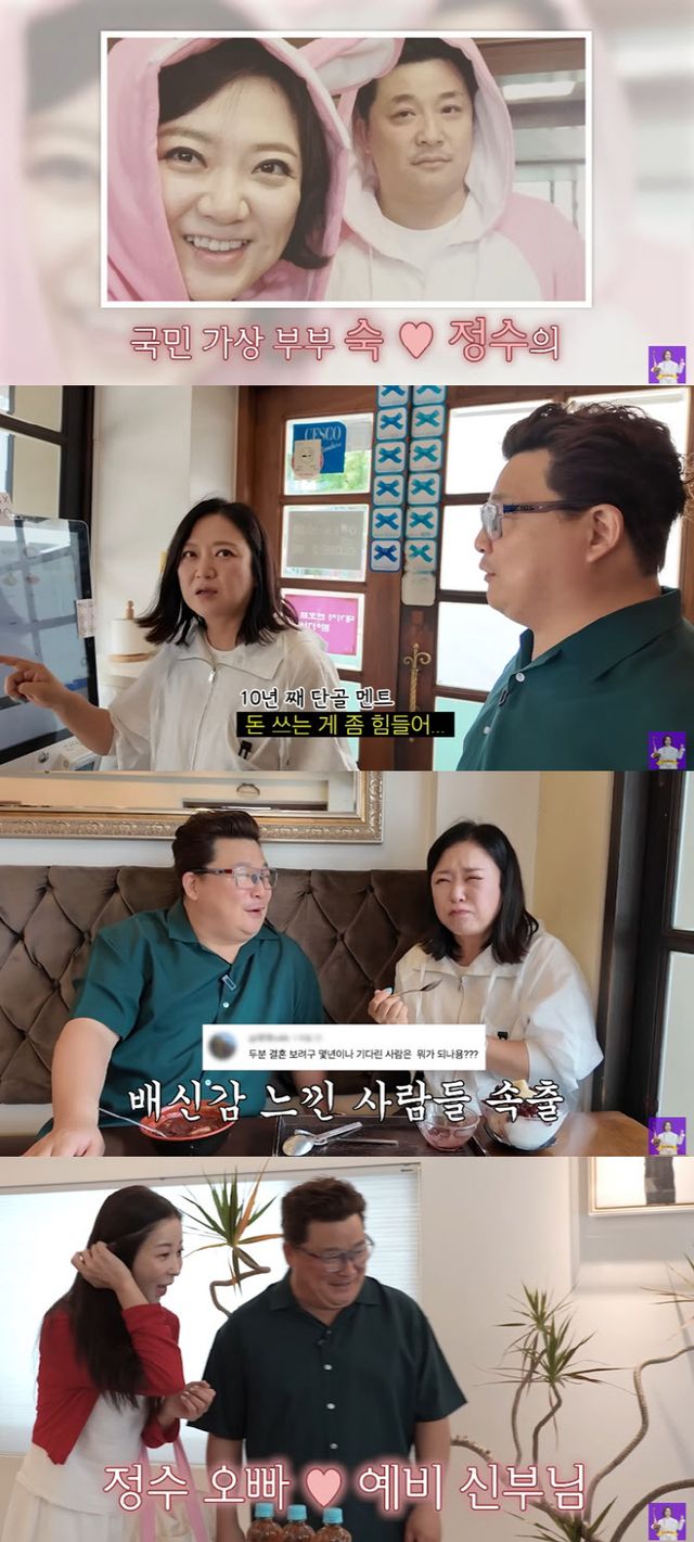 김숙은 9일 자신의 유튜브 채널 ‘김숙티비’에 ‘정수 오빠, 이제 꽃길만 걸어 쇼윈도 부부 생활 청산! 찐 장가가는 윤정수와 최고의 이별’이라는 제목의 영상을 게재했다.