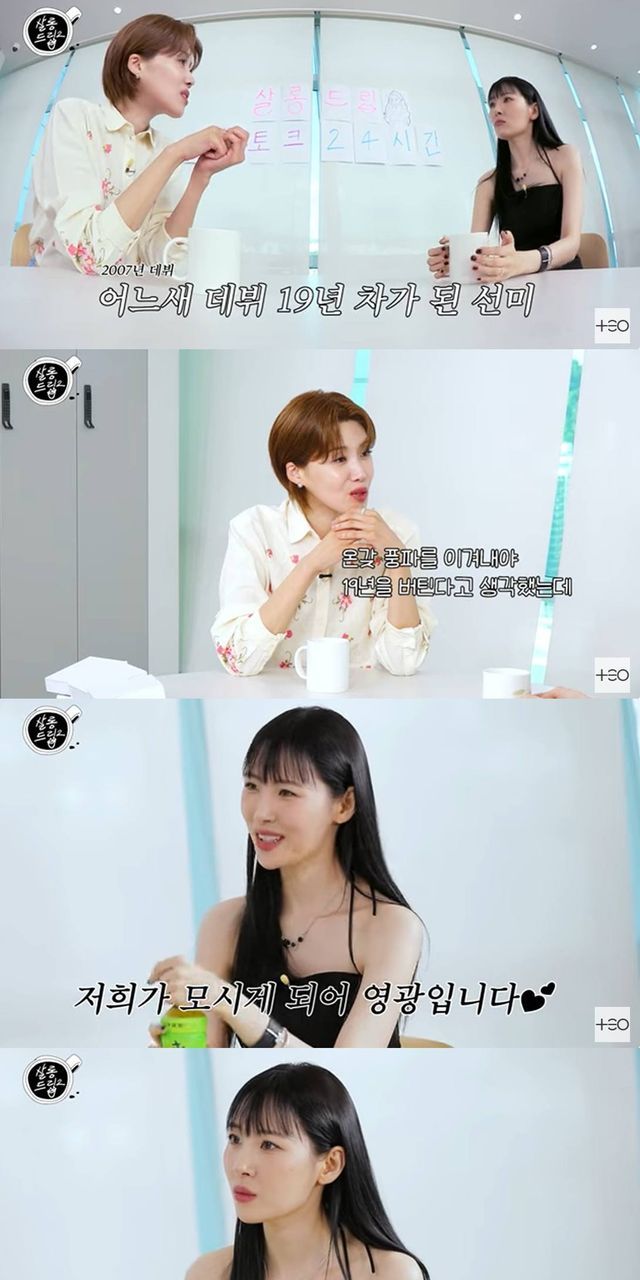 선미는 "근데 이제 (왜) 그렇게 참 바보 같은 생각을 했나 싶다. 지나고 보니까. 사실 그때는 마음이 힘들기도 했었고 찌든 순간들이 있었는데 그 순간을 한번 이겨내고 나니까 다시 예전의 선미로 돌아갈 수 있었던 것 같다"라고 이야기했다.