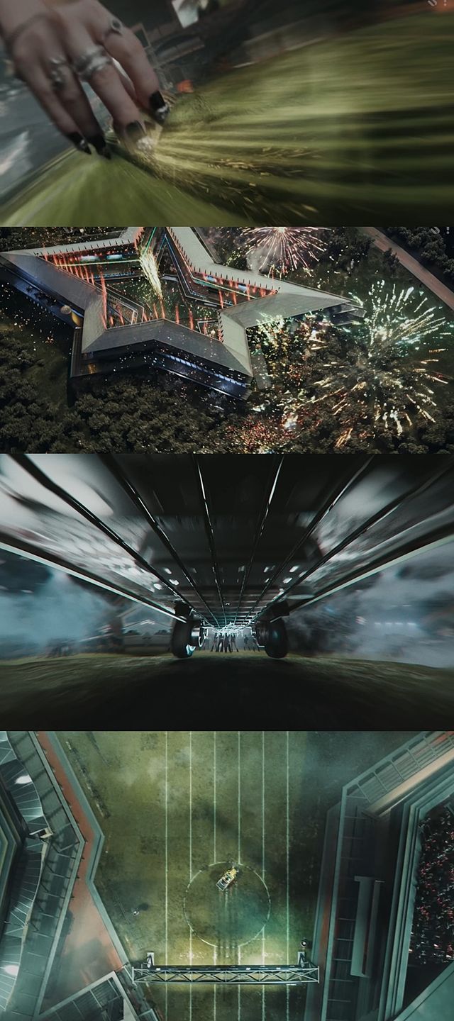 여기서 끝이 아니다. 디테일에 대한 집착도 빼놓을 수 없다. 에스파는 ‘리치맨’으로 데뷔 후 처음 ‘록 밴드’ 감성에 도전했는데, 뮤직비디오 관계자는 “영상 곳곳에 이러한 사운드를 시각적으로 담아냈다”고 전했다. 경기장 위 선수들이 남긴 탄 자국은 베이스 현의 진동처럼 보이고, 차량이 질주하는 터널은 늘어난 기타 넥을 닮았다. 경기장 트랙 라인은 여섯 줄의 기타 현처럼 설계됐으며, 곳곳에 숨겨진 밴드 악기 오브제는 반복 시청의 재미를 더한다는 설명이다.