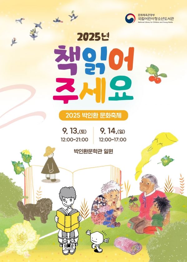 국립어린이청소년도서관(관장 박주옥, 이하‘국어청’)은 오는 9월 12일(금)부터 14일(일)까지, 인제 박인환문학관 일대에서 열리는 2025 박인환 문학축제에서 ‘책 읽어 주세요’ 캠페인을 추진한다.