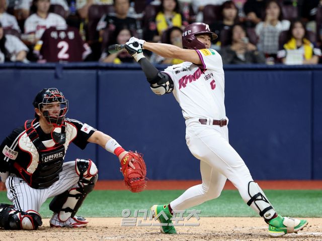 이날 톨허스트는 4회까지 5점을 내준 뒤 마운드를 내려갔다. 그에게 강한 일격을 가한 건 4회 말 스리런홈런을 친 임지열이었지만, 꾸준히 괴롭힌 건 송성문이었다. 그는 6회 무사 1·2루에서도 우측 담장까지 뻗는 적시 2루타를 치며 이 경기 2번째 타점을 올렸다.