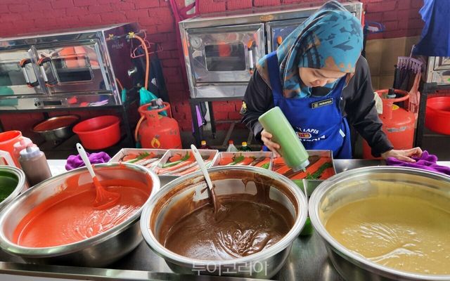 쿠칭 시내에 있는 케크 라피스 전문점 ‘Kek Lapis Warisan Sdn Bhd’에 가면 구매는 물론 오픈 키친에서 케이크 제작 과정을 직접 볼 수 있다.