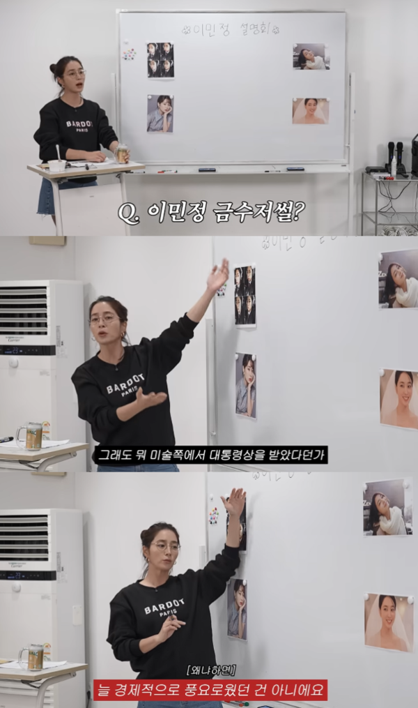 지난 9일 유튜브 채널 '이민정 MJ'에 공개된 '이민정 인생 설명회' 영상에서 이민정은 절친한 배우 왕빛나, 이소연과 함께 솔직한 이야기를 나눴다. 그는 대중이 알고 있는 가족 배경에 대해 "할아버지나 외삼촌 같은 분들이 미술 쪽에서 대통령상을 받거나 카이스트 교수님인 건 맞다"고 인정했다.