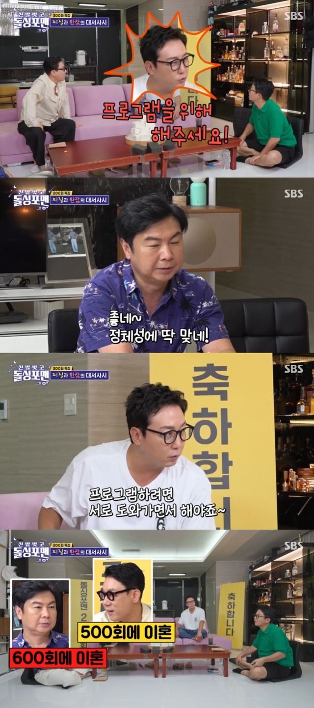 김준호는 이상민에게 "형이 먼저 결혼했으니까, 형이 먼저 이혼 해라"라며 이상민을 공격하자, 탁재훈은 "프로그램을 위해서 (이혼)해주세요"고 부추겼다. 이상민도 "파급력은 네가 세"라며 김준호를 몰아갔다. 탁재훈 또한 "프로그램 하려면 도와가면서 해야한다"며 이혼의 필요성을 이야기했다.