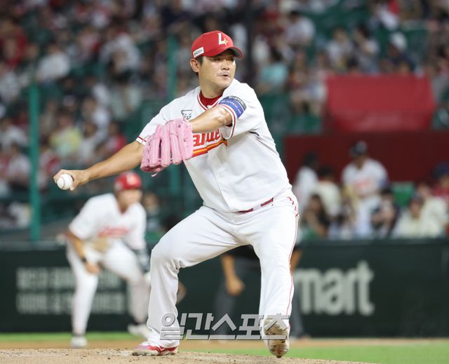 노경은은 지난주 열린 KBO리그 4경기에 모두 등판, 홀드 4개를 챙겼다. 세부 지표도 흠잡을 곳이 없었다. 4와 3분의 2이닝 무실점. 15타자를 상대해 볼넷 없이 피안타 단 2개만 허용하는 '짠물 피칭'으로 팀의 주간 전승을 이끌었다. 조아제약과 본지는 노경은을 9월 첫째 주 주간 최우수선수(MVP)로 선정했다. 그는 "전혀 예상을 못 했다. 정말 오랜만에 받는 거 같다"라며 껄껄 웃었다. 노경은의 조아제약 주간 MVP는 2022년 8월 첫째 주 이후 약 3년 만이다.