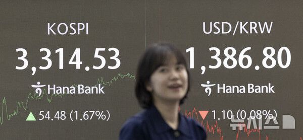 이날 코스피는 전 거래일 대비 54.48포인트(1.67%) 오른 3314.53으로 장을 마감했다. 코스피 지수 역대 최고치는 종가 기준 3305.21(2021년 7월 6일)로 약 4년 2개월 만에 최고치를 경신했다. 장중에는 3317.77까지 오르며 장중 사상 최고점인 3316.08도 갈아치웠다.