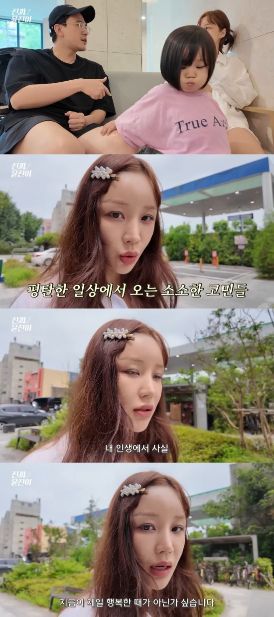 제니를 데리고 산책에 나선 윤진이는 밥 메뉴를 고민하다가 "저는 진짜 제일 행복할 때가 '뭐 먹지?' 이런 고민 할때다. 문제 있을 때는 다른 고민이 많다"라고 전했다. 또 "내 인생에서 지금이 제일 행복한 때가 아닌가 싶다. 너무 바쁘기도 하지만 그래도 그 안에서 보람을 찾고 행복을 느끼는 기간이니까. 지금도 만족하는 것 같다"라며 최근 일상에서 느끼는 행복감에 대해 고백했다.