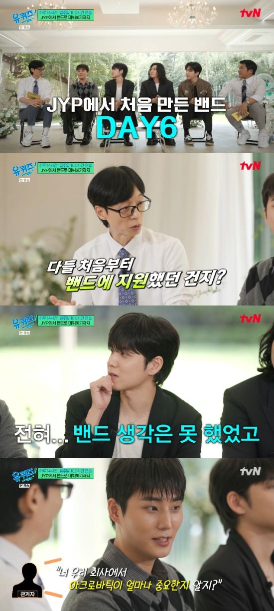 (엑스포츠뉴스 오수정 기자) '유퀴즈'에서 데이식스가 밴드로 데뷔할 줄은 꿈에도 몰랐다고 고백했다.