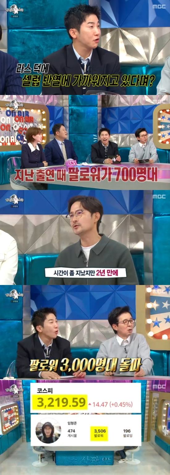 이어 임형준은 "지금 2년 정도 지났는데, 3000명 정도다. 코스피 지수와 비슷하다"고 덧붙여 웃음을 자아냈다.