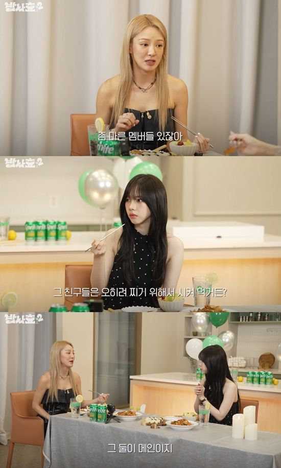 그 멤버는 소녀시대 내에서도 마른 체형인 윤아와 수영이었다. 효연은 "그 둘이 치킨을 시키면 살 쪄 있는 멤버들은 그 냄새를 따라간다. 안 불러줘도 나가서 그 옆에 앉아서 먹고 후회한다"며 "먹을 땐 행복한데 먹고 나선 찐다"고 그룹 활동 당시를 떠올렸다.