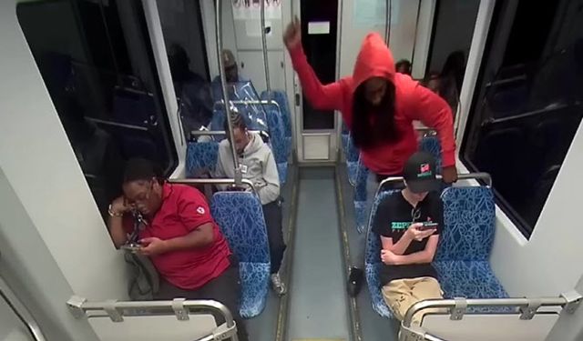 최근 공개된 영상에 따르면 긴 머리에 모자를 뒤집어쓴 흑인 남성이 경전철 안에서 자신의 앞에 앉아 휴대전화를 보는 여성을 공격했다.