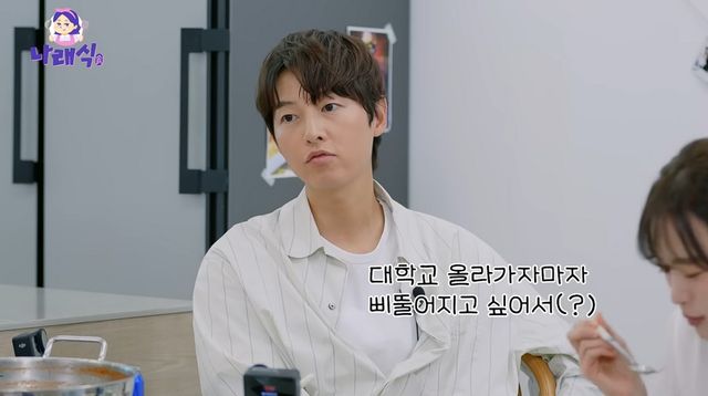 송중기는 또 “재미없게 학교생활을 해서 그랬는지 대학교에 올라가자마자 삐뚤어지고 싶어서 삐뚤어졌다. 공부는 뒤로했다. 너무 힘이 빠지더라. 지겹고 그랬다. 학사경고도 맞았다”며 힘든 학창 시절을 보낸 뒤 반전 대학 생활을 털어놨다. 그는 “그때부터 ‘내가 하고 싶은 걸 하면서 살고 싶다’라는 욕구가 생겼다. 그러다 우연히 대학 동아리 선배님을 만나 보조출연 아르바이트를 소개받았고 첫 대사도 선배님이 주셨다”며 배우 생활을 시작하게 된 계기를 전했다.