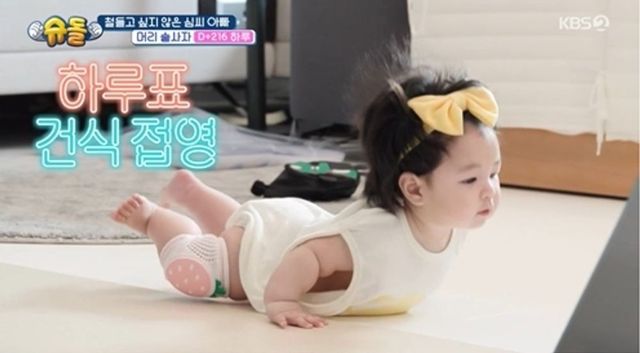 이날 하루의 기기 훈련 현장이 눈길을 끌었다. 심형탁은 “하루가 배밀이하는 방법을 몰라서 못 하는 것 같아서 가르쳐주려고 한다”며 직접 바닥을 기며 시범을 보였다. 이에 하루는 두 팔과 하체 힘을 동시에 활용하며 상체를 번쩍 세우고 마치 땅 위에서 접영을 하듯 목표물을 향해 나아가 마침내 오리 인형을 손에 얻었다. 스튜디오에서 이를 본 안영미는 “저게 바로 땅 짚고 헤엄치기다”라며 하루의 신기술에 놀라움을 감추지 못했다.