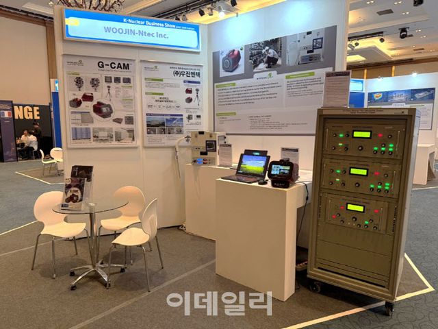 우진엔텍은 감마선 영상장비(G-CAM), 중수로 사용 후 핵연료 검증장비(OFPS), 노외중성자속감시시스템(ENFMS) 신호처리함 등 3개 핵심 제품을 전시했다. G-CAM은 방사성물질에서 방출되는 감마선을 측정해 시각적 영상으로 표시하는 장비며 OFPS는 중수로 사용 후 핵연료에 대한 물질재고 검증 장비이다. ENFMS 신호처리함은 원자로 용기 외부에서 중성자 속(neutron flux)을 검출해 발전소 출력을 제어하고 감시하는 시스템이다.