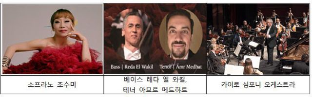 문화체육관광부와 한국국제문화교류진흥원은 한국과 이집트 수교 30주년을 기념해 이집트 카이로 일원에서 ‘조수미 & 카이로 심포니 협연’과 양국 외교 기록물 전시을 개최한다고 11일 밝혔다.