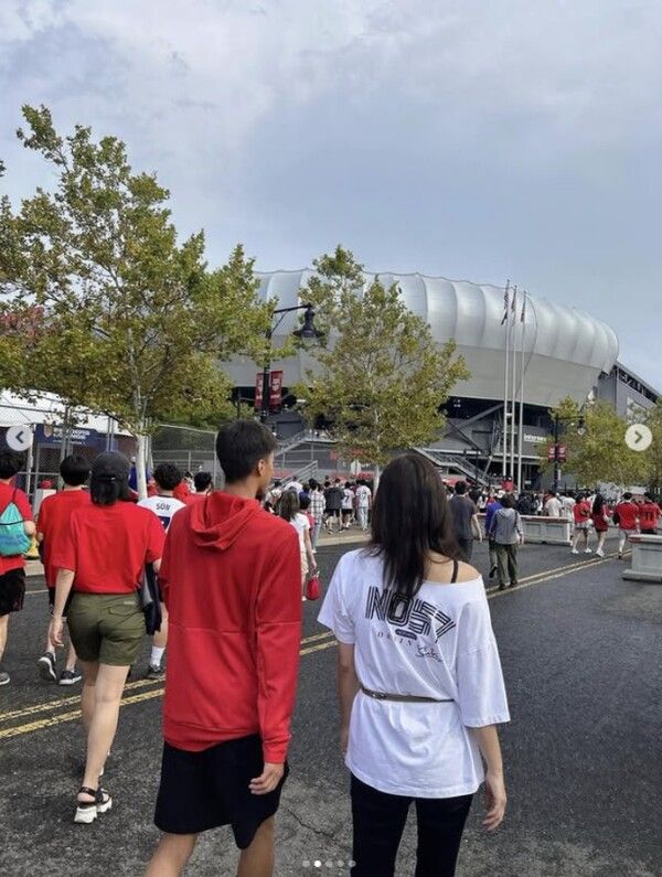 지난 8일(한국 시각) 손태영은 자신의 사회관계망서비스(SNS)에 "날씨 요정까지 도와준 태극전사들데이, 뉴저지구상암동"이라는 글과 함께 사진을 게재했다.