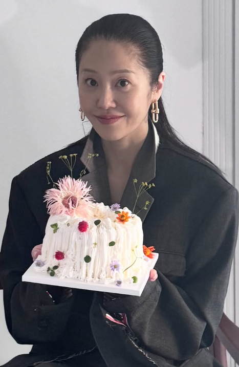 고현정은 지난 10일 자신의 SNS에 한 장의 사진을 게재했다. 공개된 사진 속 고현정은 다크 톤의 재킷을 차려입고, 감각적으로 장식된 플라워 케이크를 들고 카메라를 바라보고 있다. 꾸미지 않은 듯 자연스러운 메이크업과 단정하게 넘긴 머리 스타일은 고현정 특유의 우아함을 더욱 돋보이게 한다.