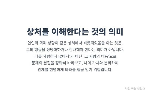 ‘나를 사랑하지 않는구나’ 혹은 ‘내가 부족해서 그런가’라는 자책 섞인 물음에서 벗어나, ‘이 사람은 이런 아픔을 가졌구나’라고 문제의 본질을 정확히 바라볼 수 있게 돕습니다.