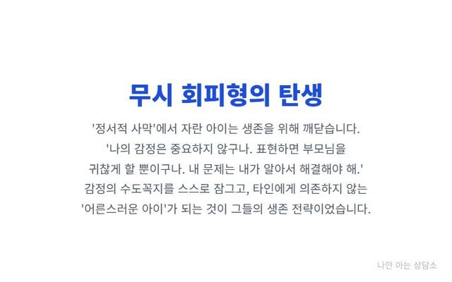 The post 회피형 남자 가족, 어린 시절의 상처와 애착 손상 appeared first on 나만 아는 상담소.