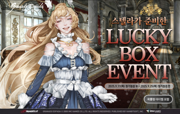 그라나도 에스파다에 따르면 2025년 9월11일 정기점검 후부터 9월25일 정기점검 전까지 '스텔라가 준비한 럭키박스' 이벤트를 전개한다.