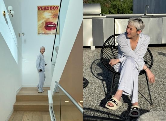 사진 속 지드래곤은 파자마 셋업, 체크 재킷, 니트 등 다양한 스타일을 소화하며 여전한 패션 아이콘의 면모를 드러낸 모습. 특히 은발 헤어스타일에 액세서리와 슬리퍼 등을 매치한 센스 있는 스타일링이 돋보인다.