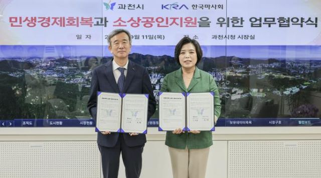 [파이낸셜경제=김영란 기자] 과천시는 지난 11일, 시장 집무실에서 신계용 과천시장과 한국마사회 정기환 회장이 참석한 가운데 ‘민생경제회복과 소상공인 지원을 위한 업무 협약’을 체결했다.