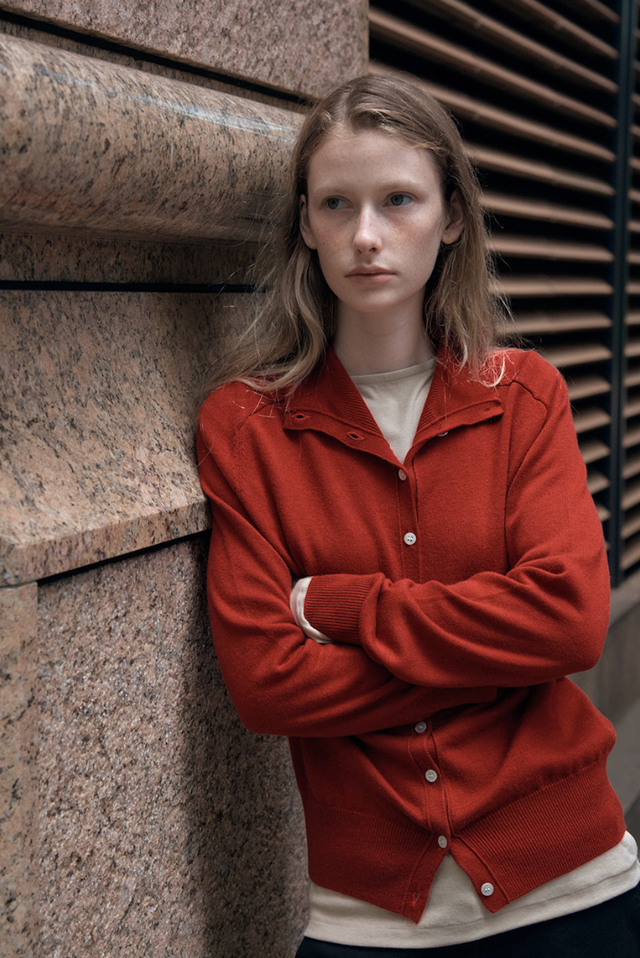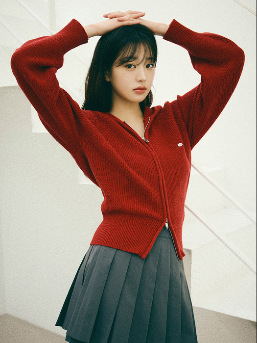 레드 컬러의 니트 카디건은 한 벌로도 포인트 아이템이 되기 충분해서 단독으로 매치하기 좋다. 얼굴을 화사하게 밝혀주는 컬러인 만큼 피부톤과 니트의 채도 매치에 신경쓸 것. 이너 없이 가디건을 단일로 입을 때는 쇄골 라인에 걸쳐지거나 그 위로 올라오는 라운드 네크라인이 실패가 적다. 카라나 후드가 달린 아이템도 종종 등장하고 있어 매치하기 좋은 편. 스커트와 팬츠 모두 잘 어울리지만, 딥 레드라면 무채색 계열을, 밝은 레드 컬러를 선택했다면 그보다는 화이트 혹은 샌드 계열도 무난하게 소화하며, 과감하게 연출할 경우 채도가 낮은 그린 계열로 보색 대비를 이뤄도 좋다.