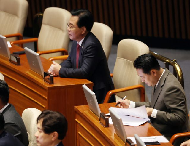 지난 9일 정청래 더불어민주당 대표가 정기국회 교섭단체 대표연설 중 "노상원 수첩이 현실로 성공했더라면 이재명 대통령도 저 정청래도 이 세상 사람이 아니었을 것"이라는 대목에서 송언석 국민의힘 원내대표가 "제발 그리 됐으면 좋았을걸"이라고 막말로 야유했다는 논란과 관련, 당 내에서도 송 원내대표를 비판하는 반응이 나왔다.