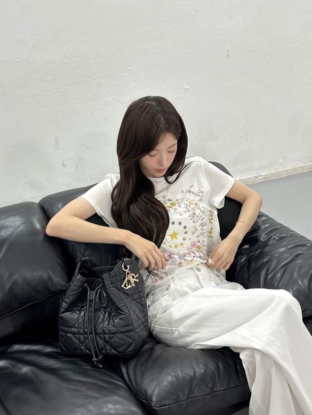 노정의는 올화이트 룩에 디올 디모션(D-Motion) 백을 매치해 특유의 우아한 무드를 한층 강조했다. 송아지 가죽 소재에 드로우스트링 클로저와 슬라이딩 스트랩이 더해져 다양한 스타일 연출이 가능하며, 실용성과 스타일을 모두 갖춘 제품이다. 세련되면서도 트렌디한 무드를 연출하고 싶다면 주저 없이 추천한다.
