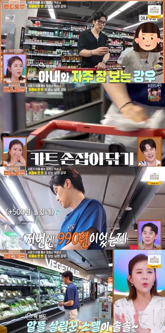 평소 아내와 함께 자주 장을 본다고 밝힌 김강우는 채소의 판매 가격을 잘 파악하고 비교한 뒤 구매하는 등 '프로 살림꾼'의 면모를 드러내 관심이 집중됐다.
