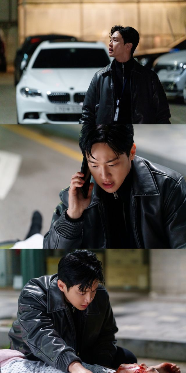 ‘사마귀: 살인자의 외출’ 장동윤이 피투성이 위기에 처한다.