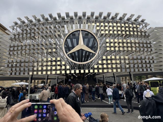고즈넉한 공원 레지덴츠가르텐에는 메르세데스-벤츠 오픈 스페이스가 조성돼 있었다. 입구에 들어서자마자 압도적인 크기의 새로운 라디에이터 그릴 조형물이 이목을 집중 시켰다. 브랜드 상징인 삼각별 엠블럼은 LED로 빛났다. 기술력과 혁신성을 동시에 보여주는 전시장 콘셉트였다.
