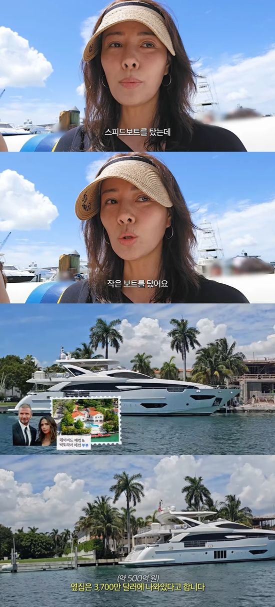 또 손태영은 "스피드 보트를 탈 거다. 할리우드 스타들의 별장들이 많다고 한다"라며 계획을 밝혔다. 보트에 탑승한 손태영은 "스피드 보트에 탔는데 사람이 많지 않아서 작은 보트를 탔다"라고 설명했다.