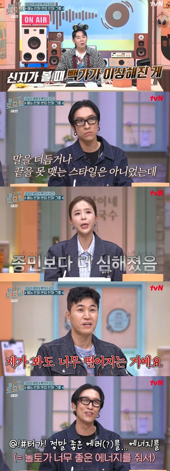 이날 붐은 7번 '놀토'에 출연한 빽가를 두고 "신지 씨가 볼 때 빽가가 이상해진 게 '놀토' 출연 이후라고?"라고 물었다.